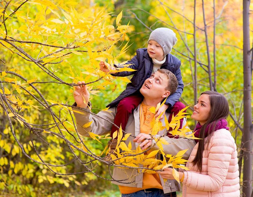 In the fall, because of shortening days and cooling temperatures, leaves stop making as much food and the chlorophyll inside the leaves breaks down. Chlorophyll gives summer foliage its rich green color. This allows the yellow, orange, and red pigments, all of which come from chemical changes that occur as the seasons change, to take center stage.